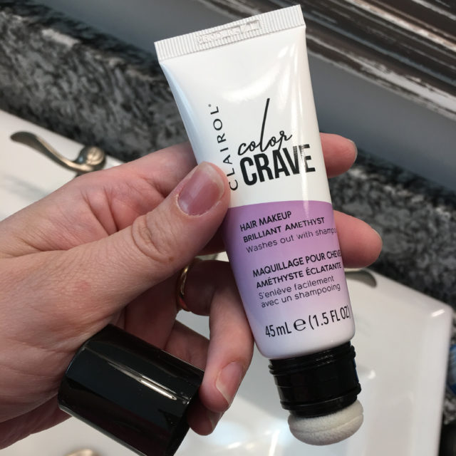 I’ll confess I’ve wanted to try having purple hair since watching Disney’s Descendants. Mal just makes purple hair look like fun. So when I saw the new hair color from Clairol called Color Crave I figured I’d give it a try. It was a bit of a mess from the beginning. I couldn’t even find it in a store. I went in search of the semi-permanent version, but after going to 4 stores and having no luck when I finally found the wash-out hair makeup version at Target I decided I’d try that first.