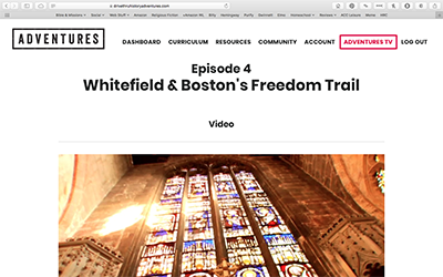 “I am focusing on the American History curriculum. I liked the Boston Freedom Trail episode best because of the obelisk on Bunker Hill. I like when Dave jokes around about the city or town that he is in. I also like his seriousness when he is talking about God. The contents of the curriculum are full of fascinating facts and good questions.”