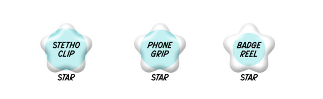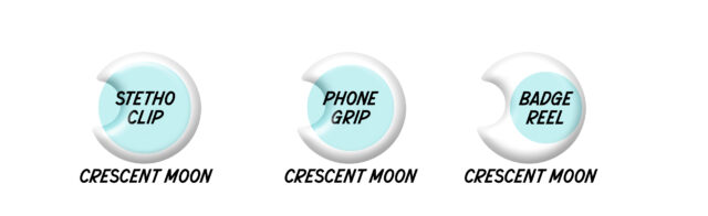 Many shapes fit on to phone grips or stethoscope tags with little or no edges hanging over.